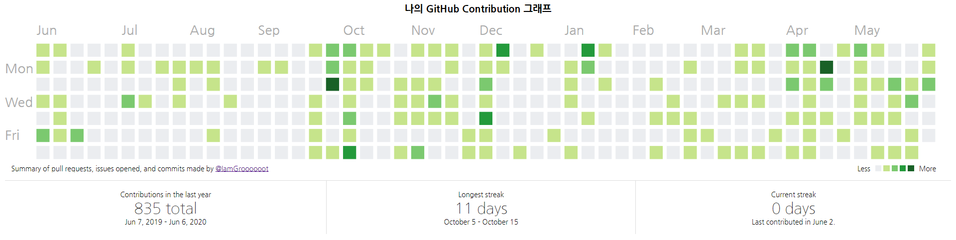 GitHub Contribution 그래프를 아래와 같이 임베딩하는 방법