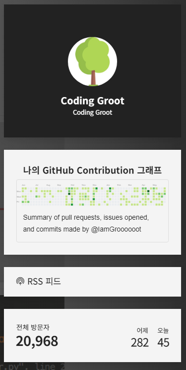 https://orcacode.tistory.com/entry/Tistory%EC%97%90-Github-Contribute-%EC%9C%84%EC%A0%AF-%EB%A7%8C%EB%93%A4%EA%B8%B0