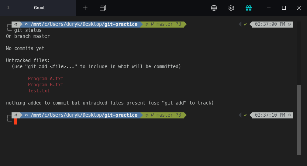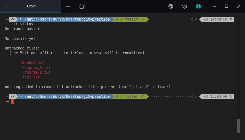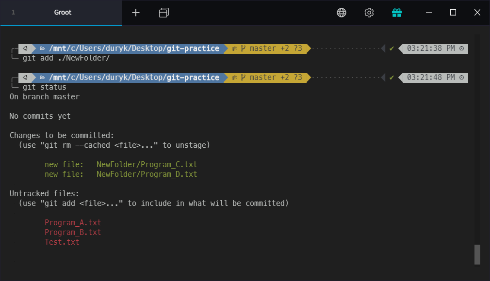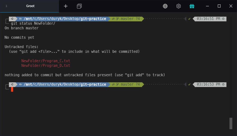 기존의 상황에 추가로 NewFolder 안에는 Program_C.txt, Program_D.txt도 Untracked된 상태로 존재합니다.