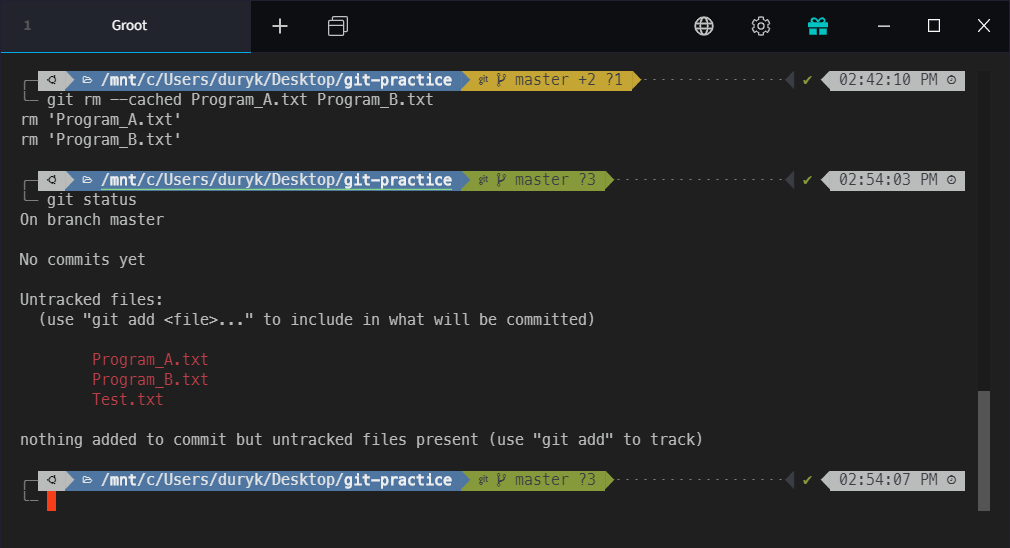 Program_A.txt, Program_B.txt가 다시 Untracked file로 돌아간 것을 볼 수 있습니다.