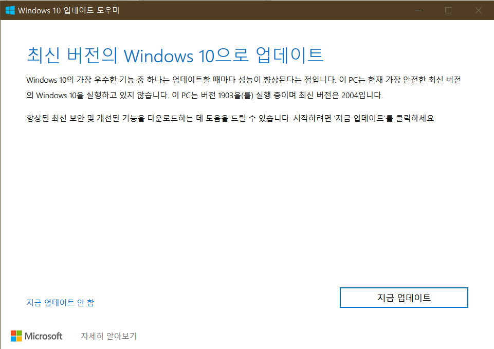 1903에서 2004 버전으로 업그레이드 해보자