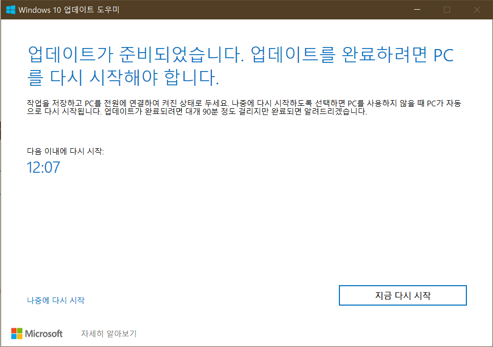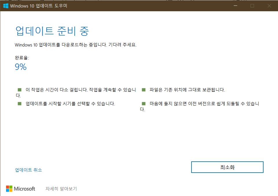 업데이트 도우미를 이용해서 업데이트하는 법