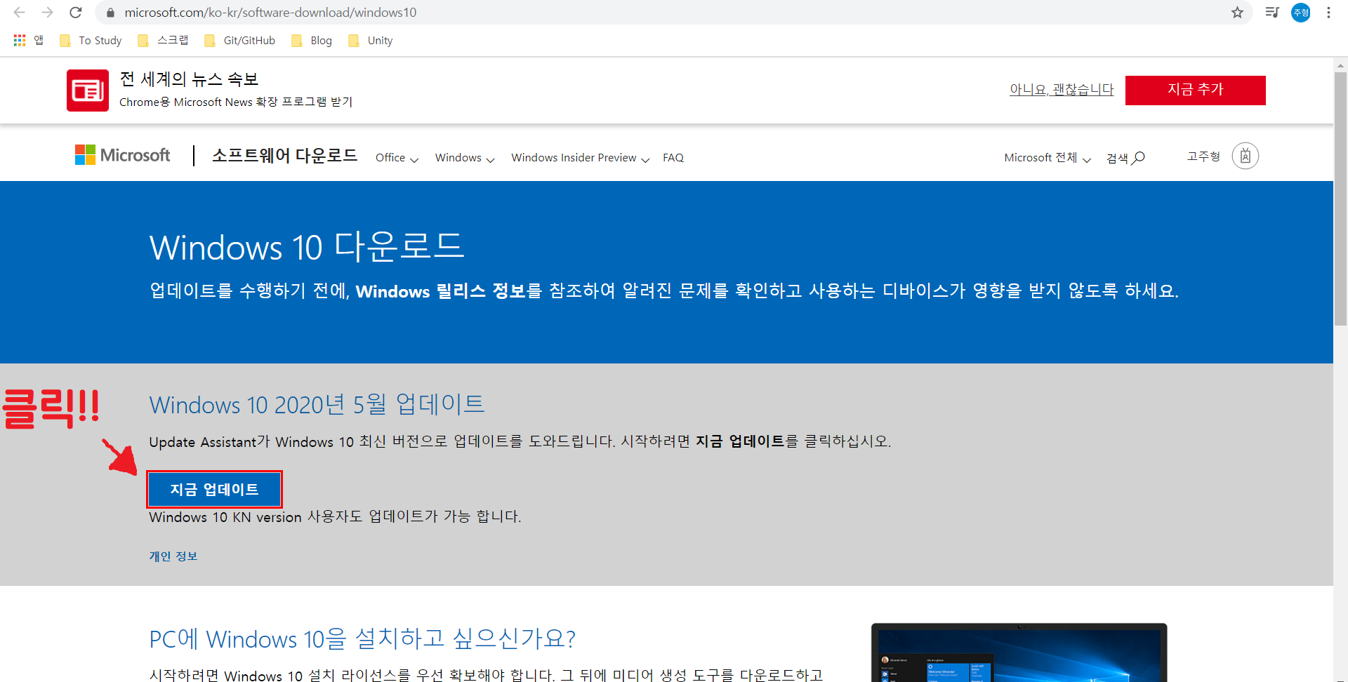 Windows 2004 Update 수동으로 하는 법 (업데이트가 안 뜰 때 해결법)