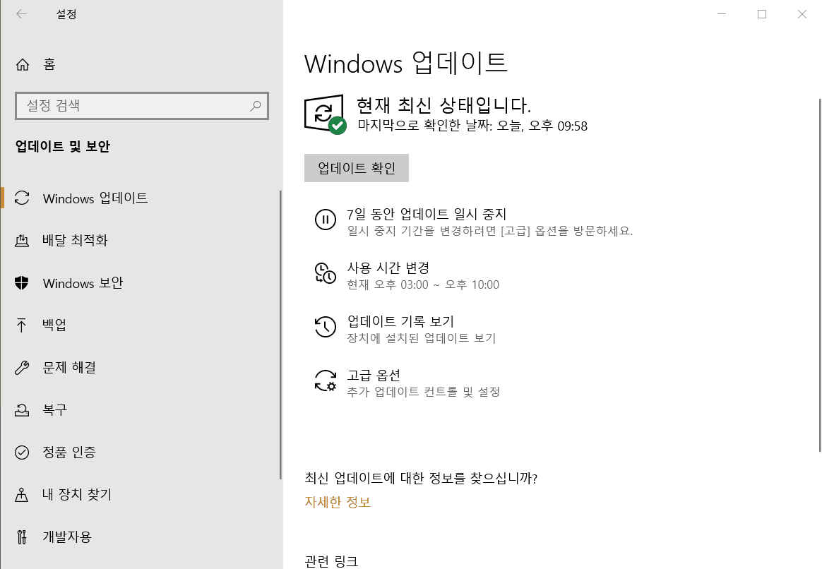 이렇게 계속 1903 버전인데도 최신 상태로 나옵니다!!