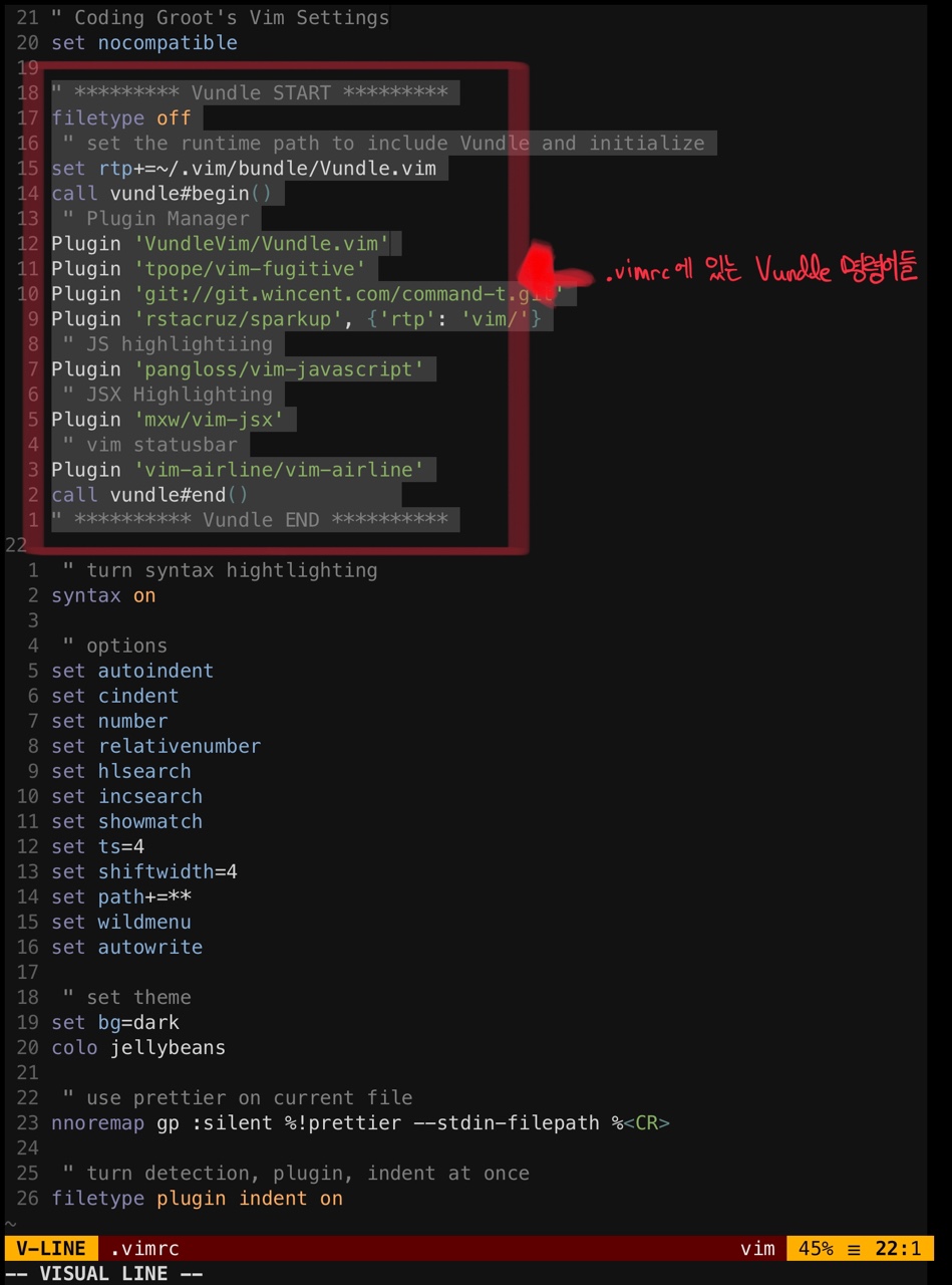 그 파일에서 Vundle 관련한 부분을 지우자.