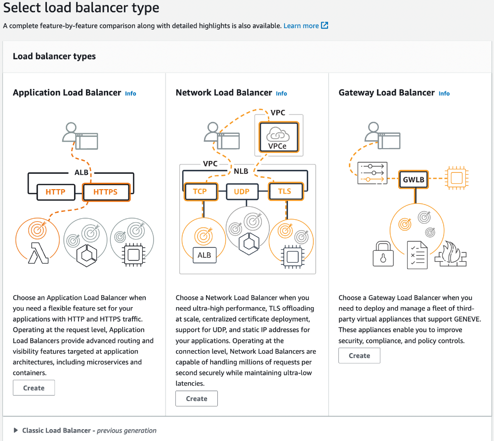 설명을 읽으면 대략 어떤 로드밸런서를 쓸지 알 수 있다. 사진에도 명확하게 표시되어 있다. 나에게는 HTTP, HTTPS가 그려진 Application Load Balancer가 적합하다.