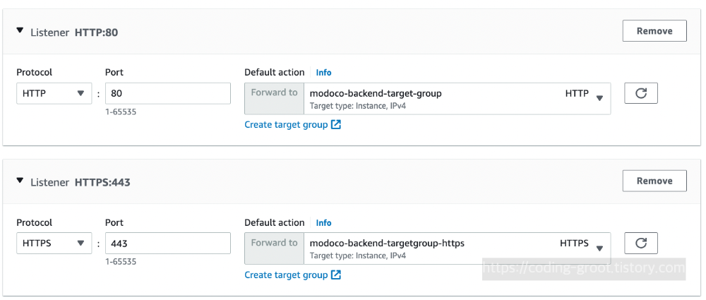 이때 인스턴스의 포트는 굳이 표준적인 80이나 443일 필요는 없다. LB가 해당 서버(인스턴스)와 통신할 때 사용할 것을 넣어주면 된다.