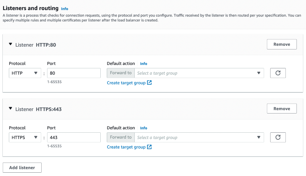 여기서 인증서를 붙여준다. Add listener를 눌러서 HTTPS를 추가하자.