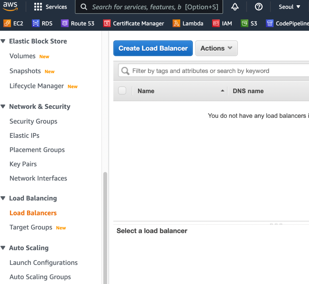- 다음으로는 우리가 로드 밸런서를 생성한 곳인 Asia Pacific (Seoul)을 선택한다.