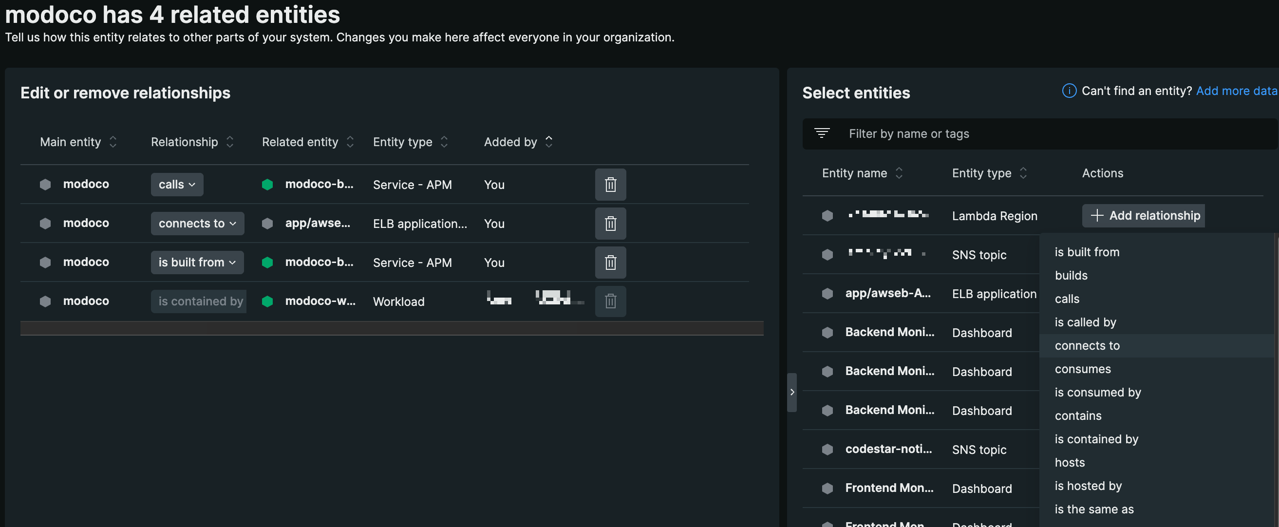 오른쪽 메뉴에 보면 Related enties라고 나오는데 거기에 있는 Add/edit related entities 버튼을 클릭한다.