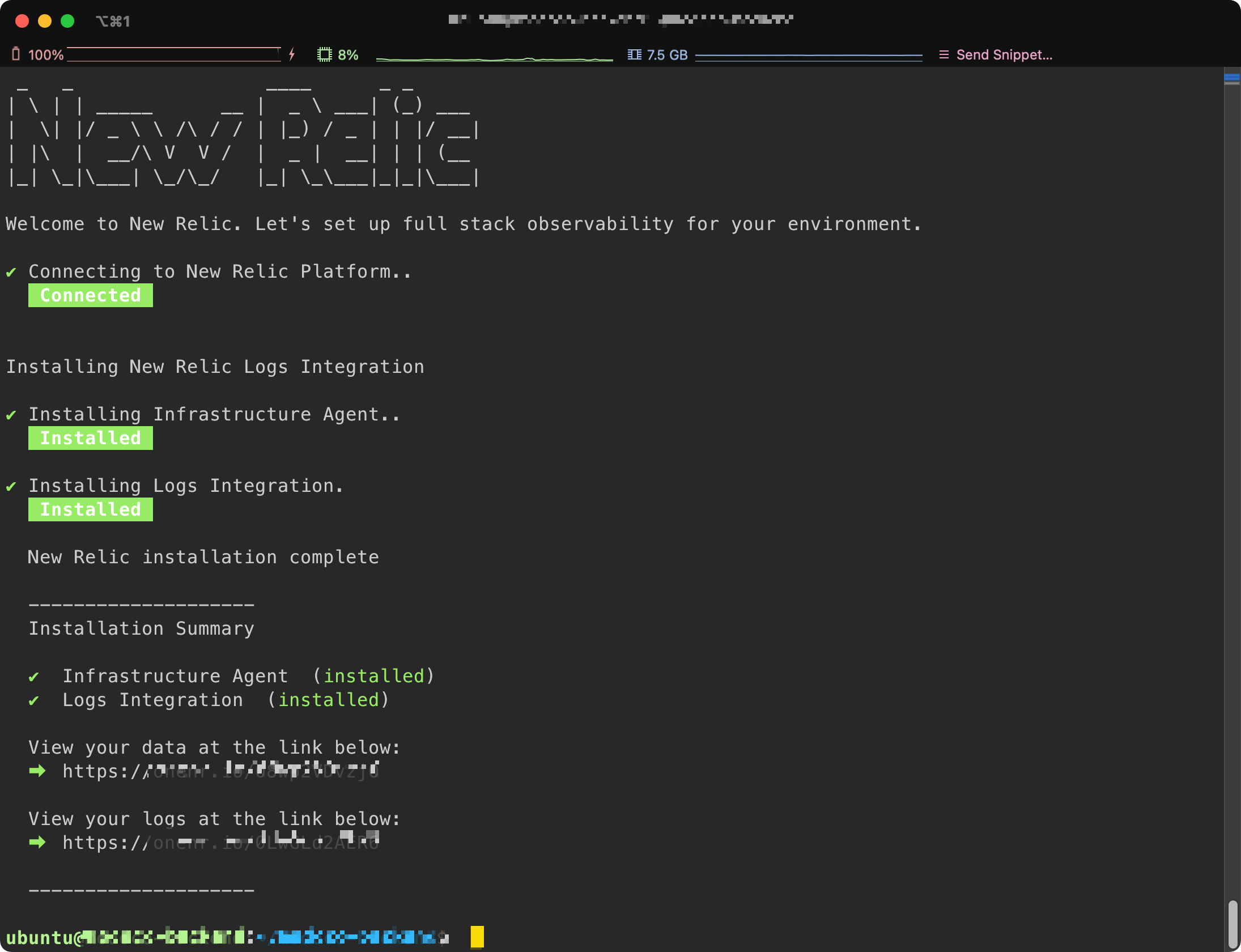 5. Node.js Agent의 명령어를 서버에 실행한다.