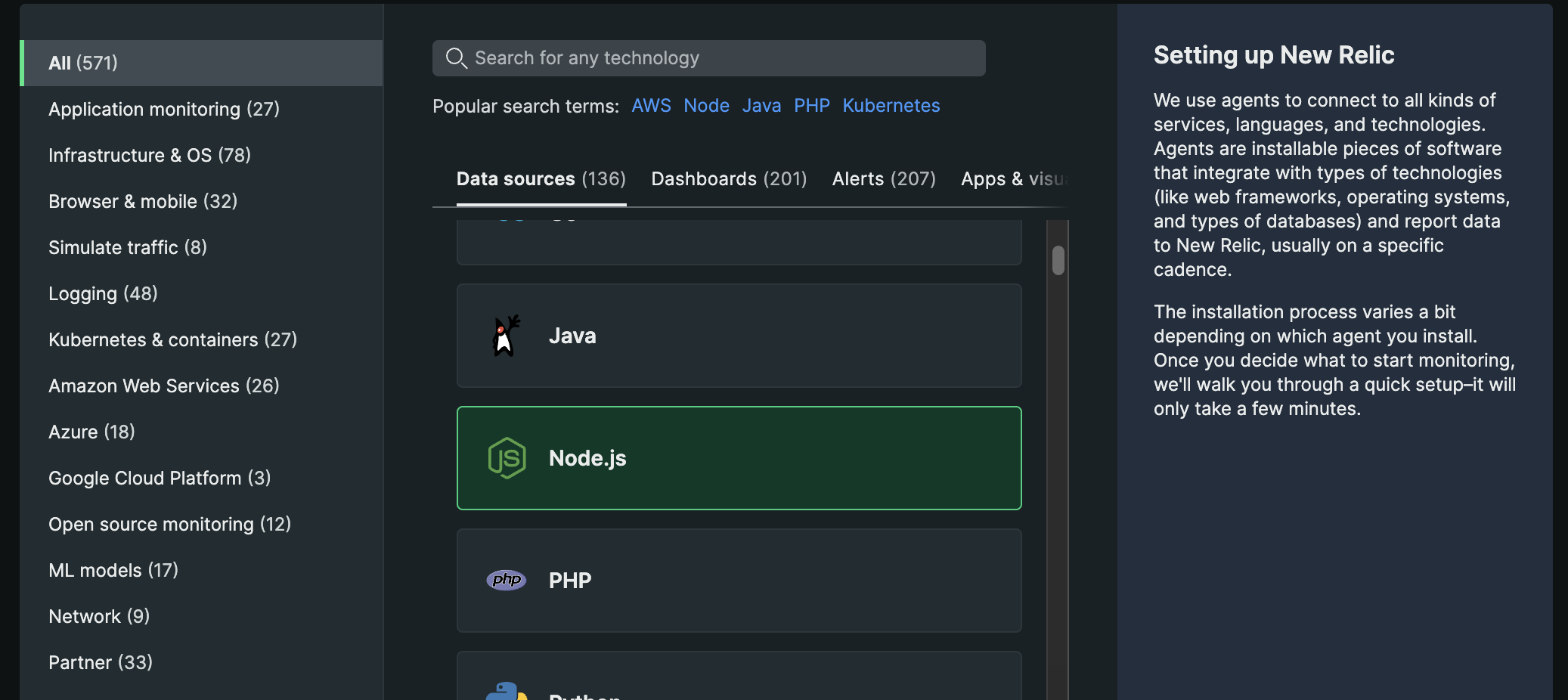 아래의 설명은 New Relic 신 UI 기준으로 되어있다. 구버전 UI를 사용하는 경우 아래 캡처 화면과 다르게 나옵니다.
