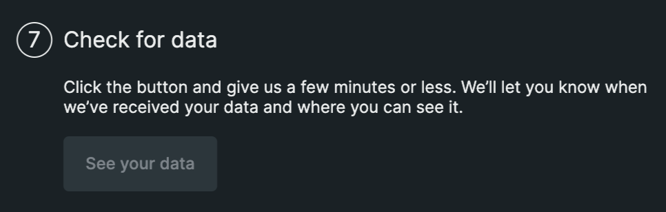 10.의 코드가 성공적으로 잘 실행이되고 연동이 되었다면 이제 ⑦의 See your data 버튼이 자동으로 활성화가 될 것이다.
