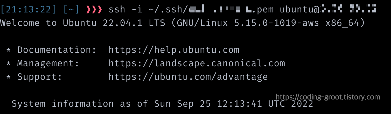 ssh -i 키페어_위치 ubuntu@인스턴스_Public_IP