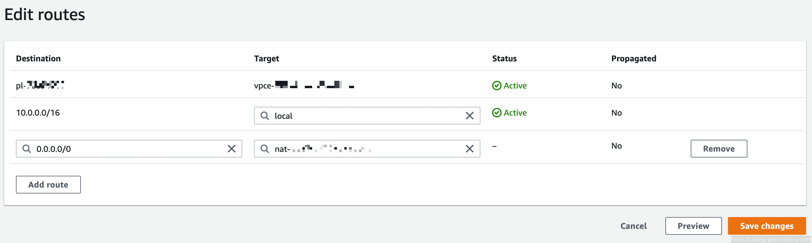 Routes 탭에서 Edit routes를 누른다.