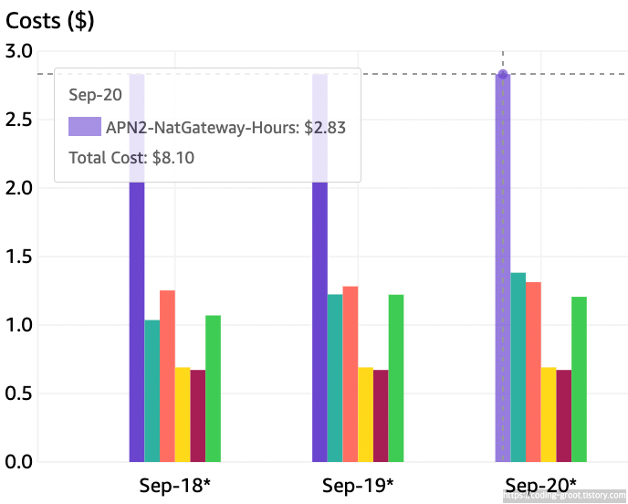 이중화해서 NAT를 AZ별로 두 개를 써서 매일 2.832$가 부과되었다.