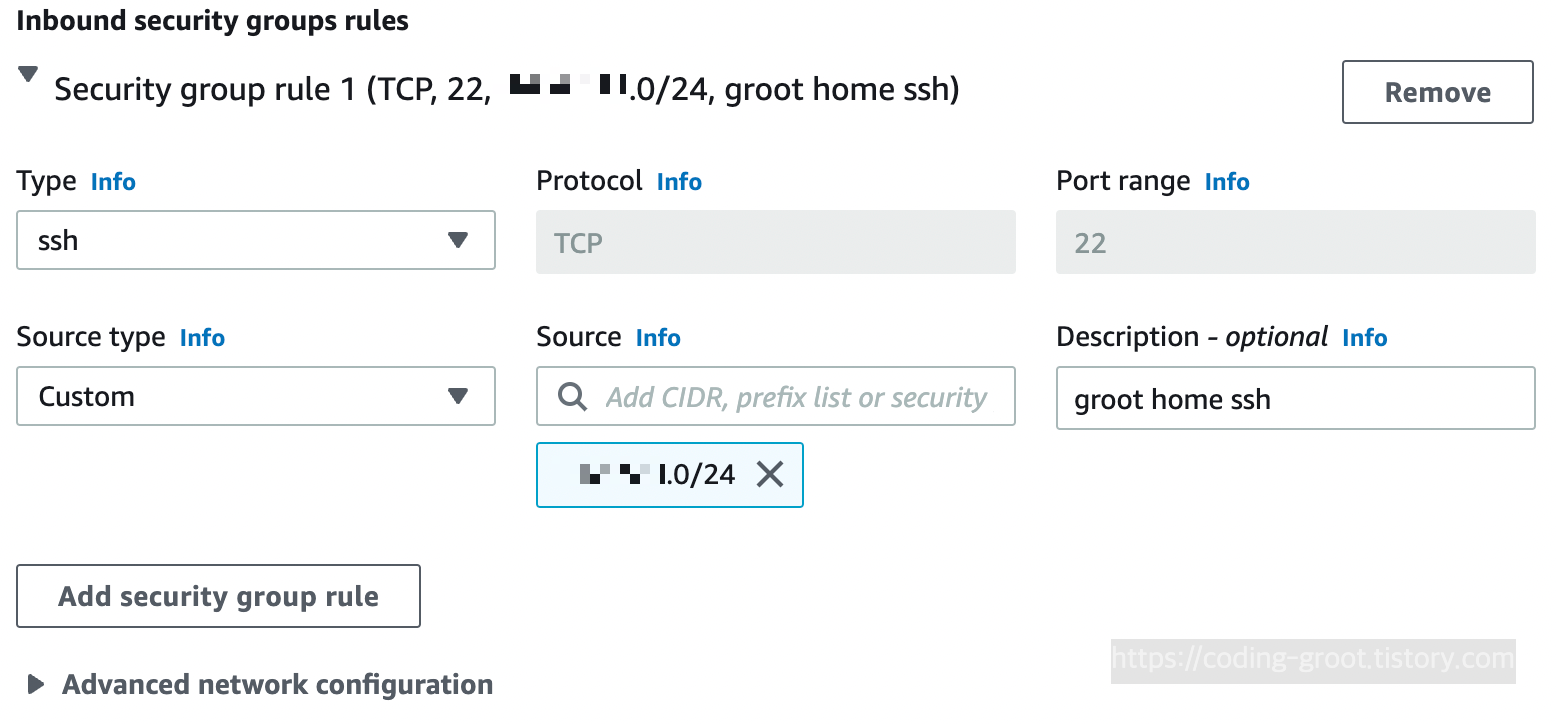 나는 일단 In-Bound 규칙에 접속용으로 ssh만 추가해주고 나중에 VPC의 Default 보안 그룹을 추가해줘도 모든 내부 트래픽을 허용해줄 예정이다.