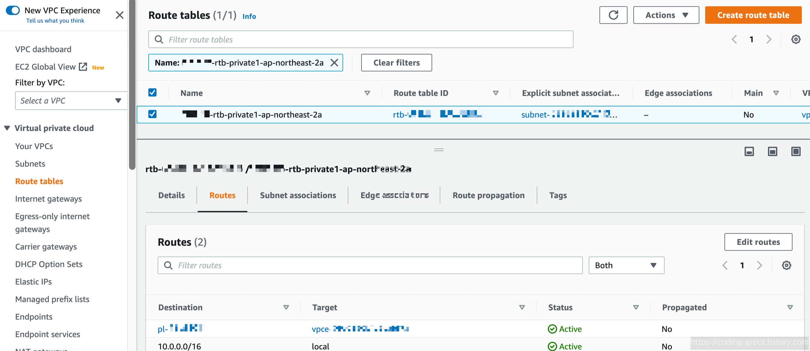 지금은 아래와 같이 외부로 나가는 트래픽은 northeast-2a에 위치한 NAT Gateway로 가도록 되어있을 것이다.