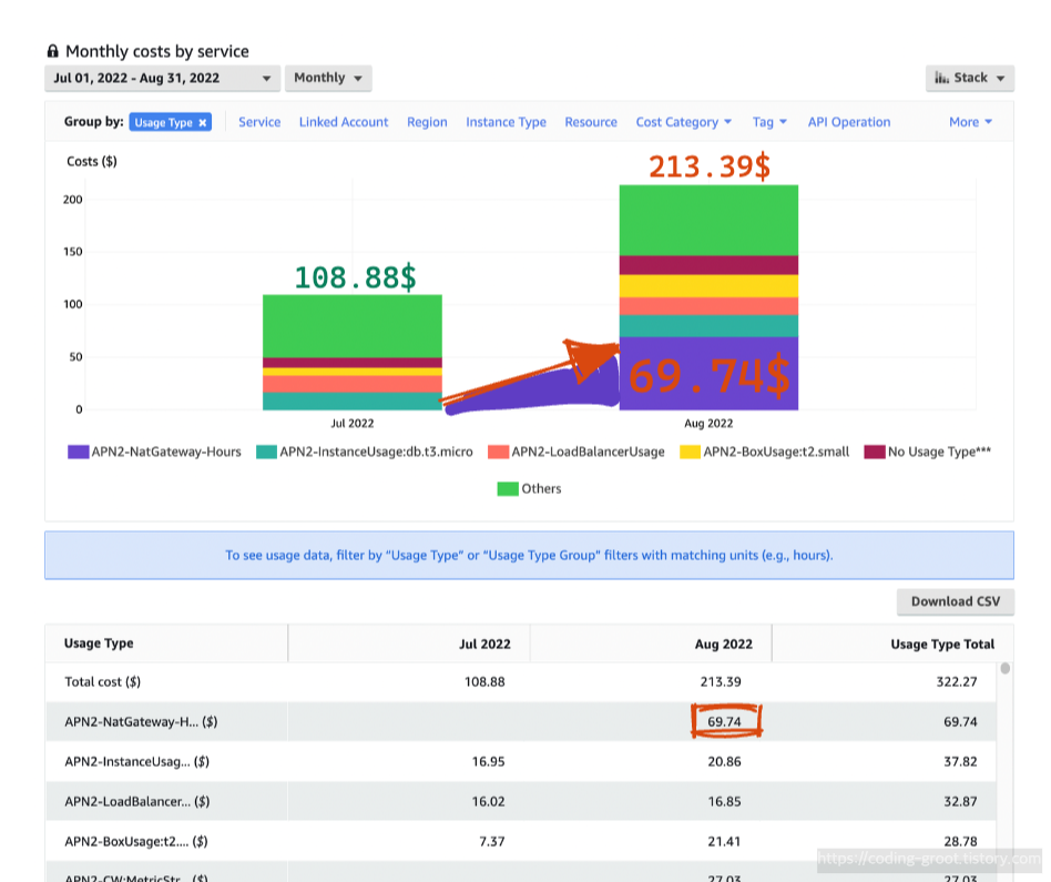 APN2-NatGateway-Hours... 이놈이 원인이다.