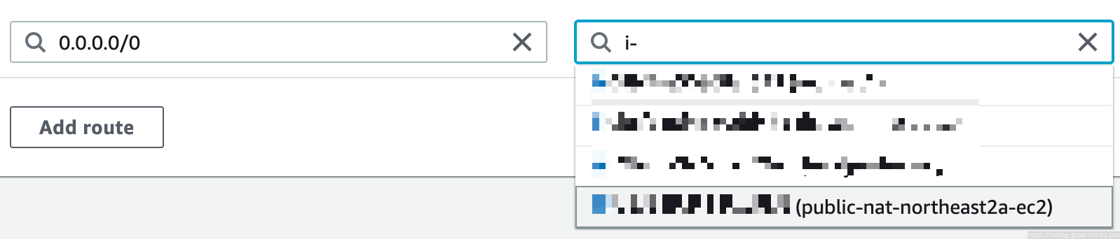 이때 Public NAT용으로 만든 EC2 인스턴스를 선택한다.