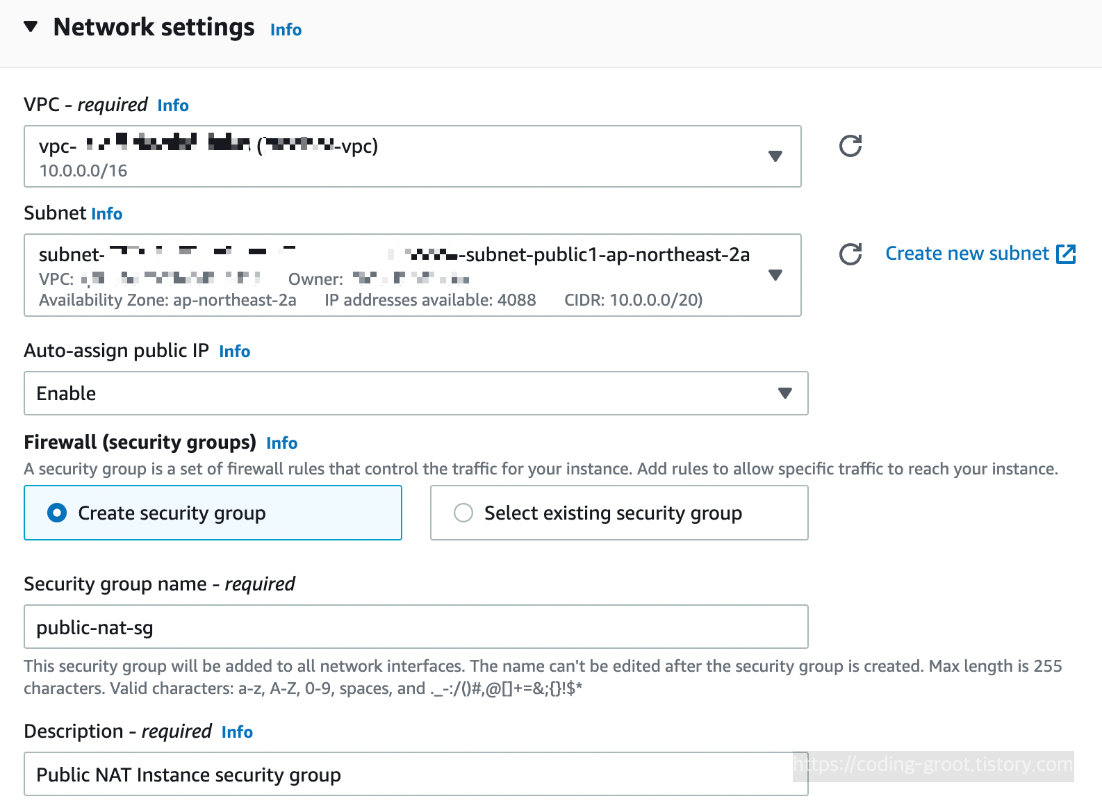 일단 ap-northeast-2a에 먼저 만들어보자. ap-northeast-2a에 위치한 Public Subnet을 선택했다.