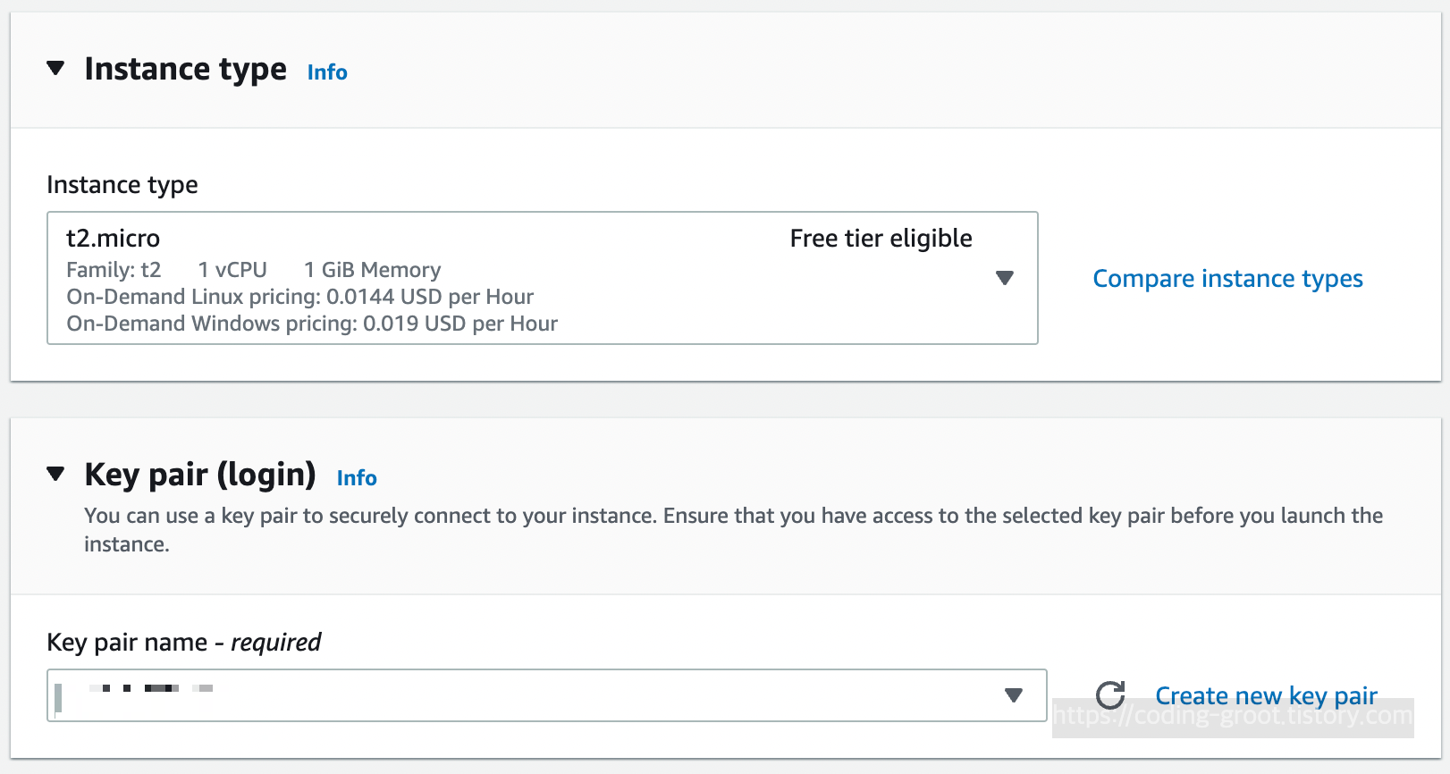 인스턴스 타입은 t2.micro로 싸게 싸게 설정해준다.