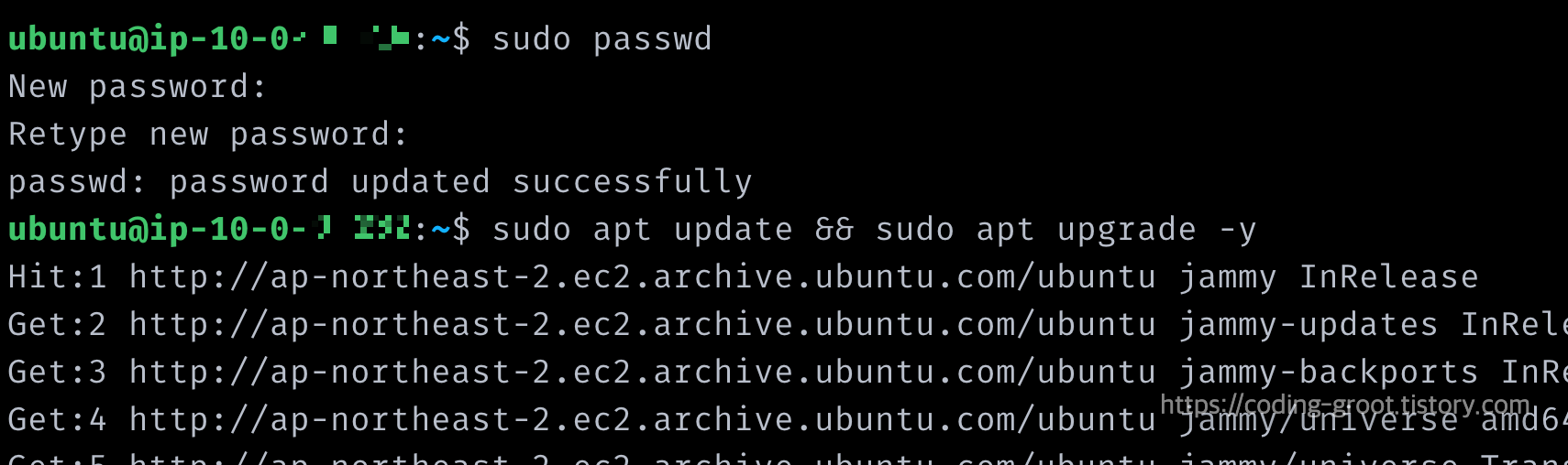 Root 비밀번호도 설정해주고 미리 패키지도 업데이트하고 업글해주자.