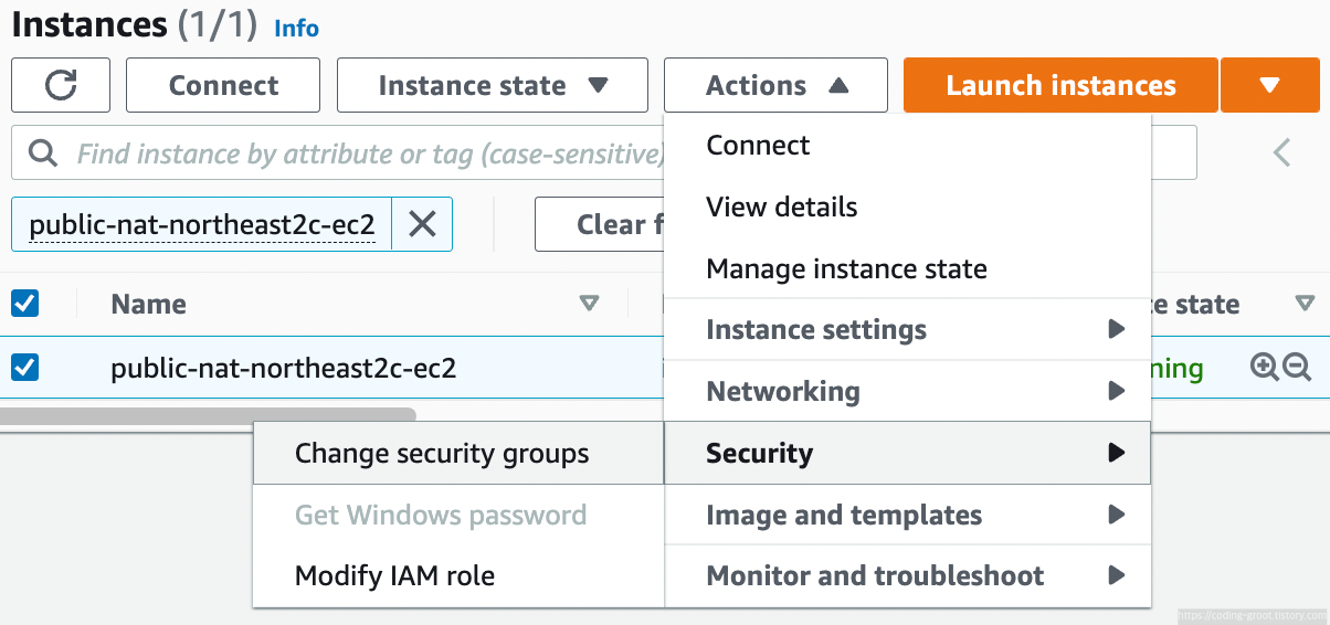 그리고 Save를 누르면 인스턴스의 Security Group을 추가할 수 있다.