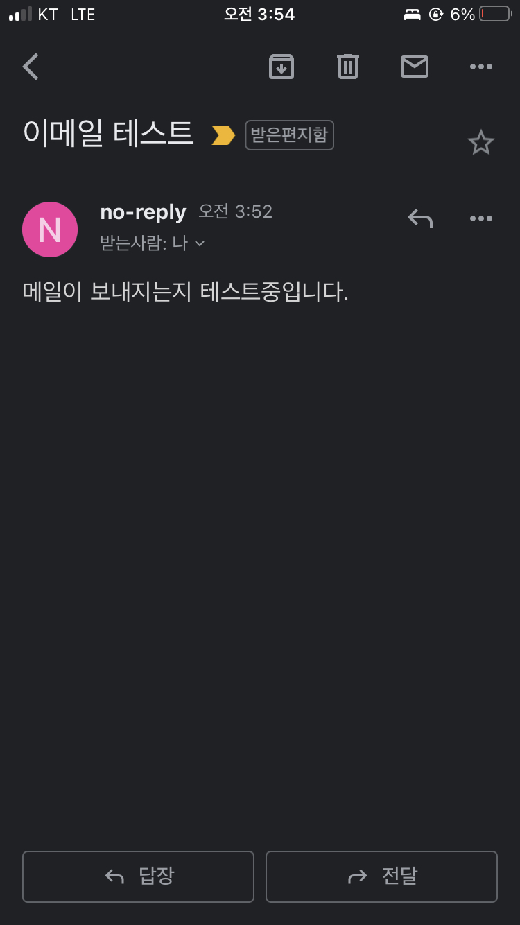 Data: '메일이 보내지는지 테스트중입니다.',