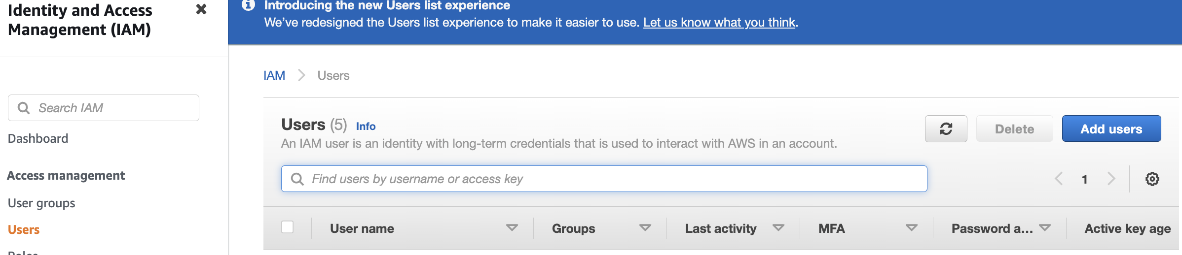 SES API용으로 IAM 창에서 새로운 유저를 만들어보겠습니다.