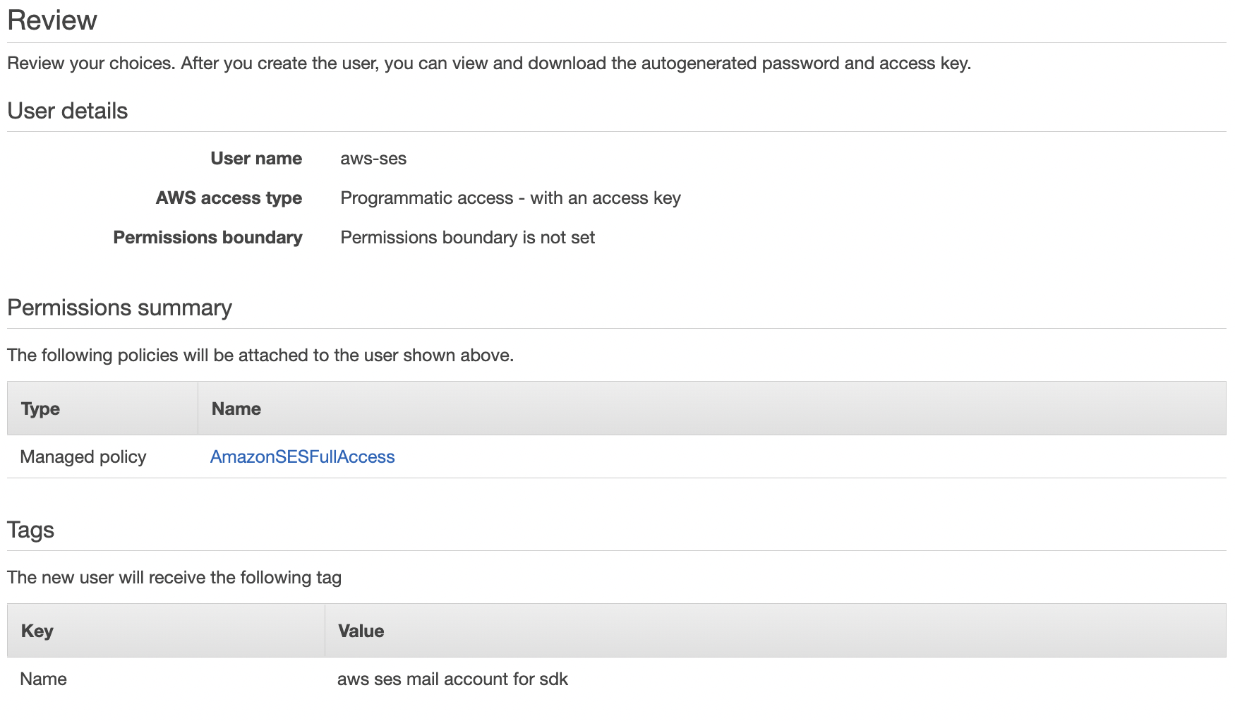 1. 메일용 IAM 사용자를 만들어서 AWS access key를 발급받자