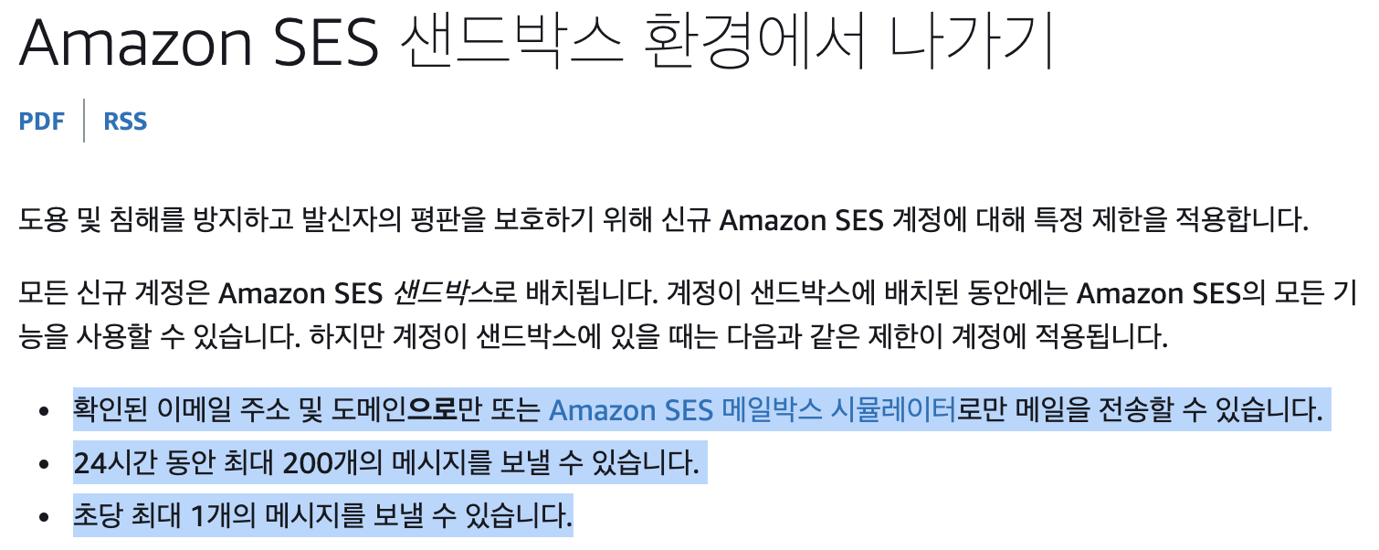 - AWS SES를 Sandbox에서 Production으로 업그레이드