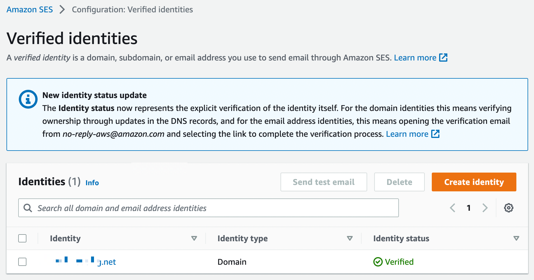 인증된 Identity는 아래처럼 상태가 Verified로 뜹니다.