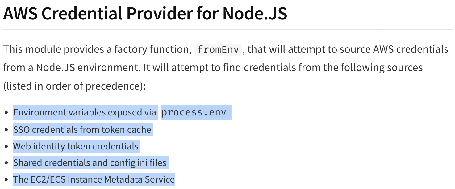 AWS API V3부터는 @aws-sdk/credential-provider-node를 클라이언트 생성자에 직접 주입하도록 바뀌었습니다.