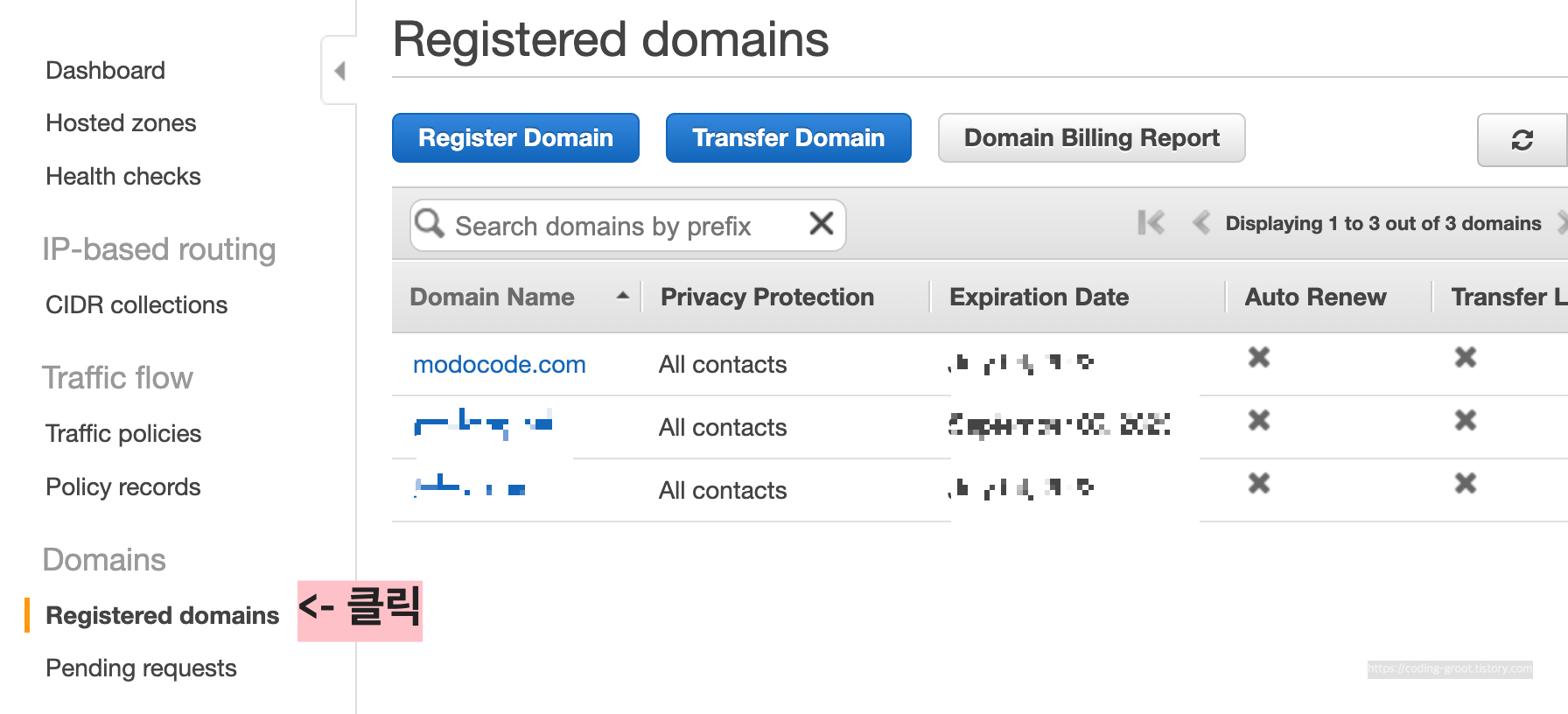 저는 웹 콘솔 상에서 클릭해서 도메인을 3개를 구매했었습니다(이것도 Operation입니다).