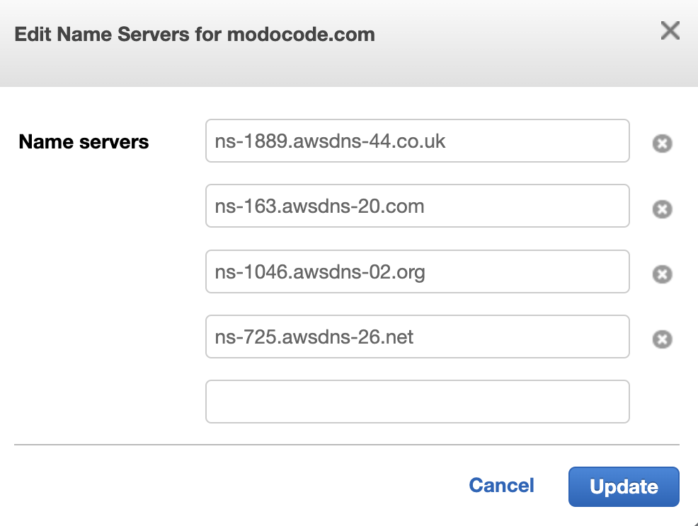 이제 이 name server 주소로 registered domain의 name server를 업데이트해보겠습니다.