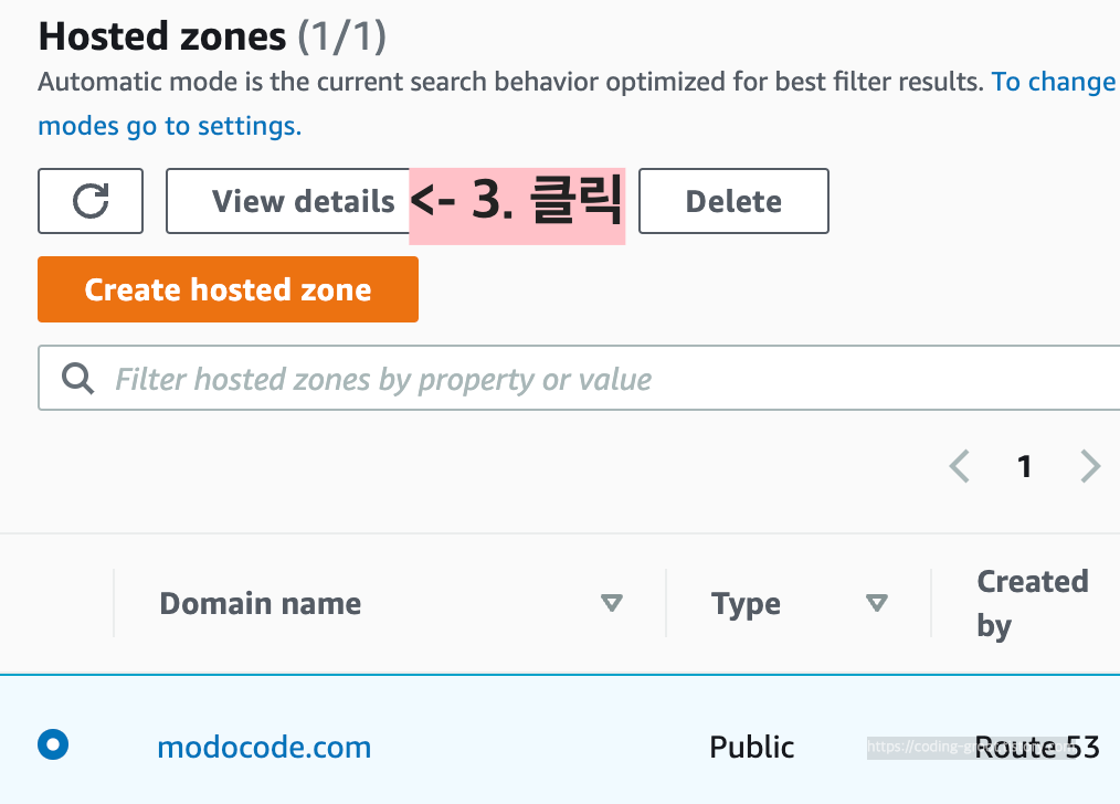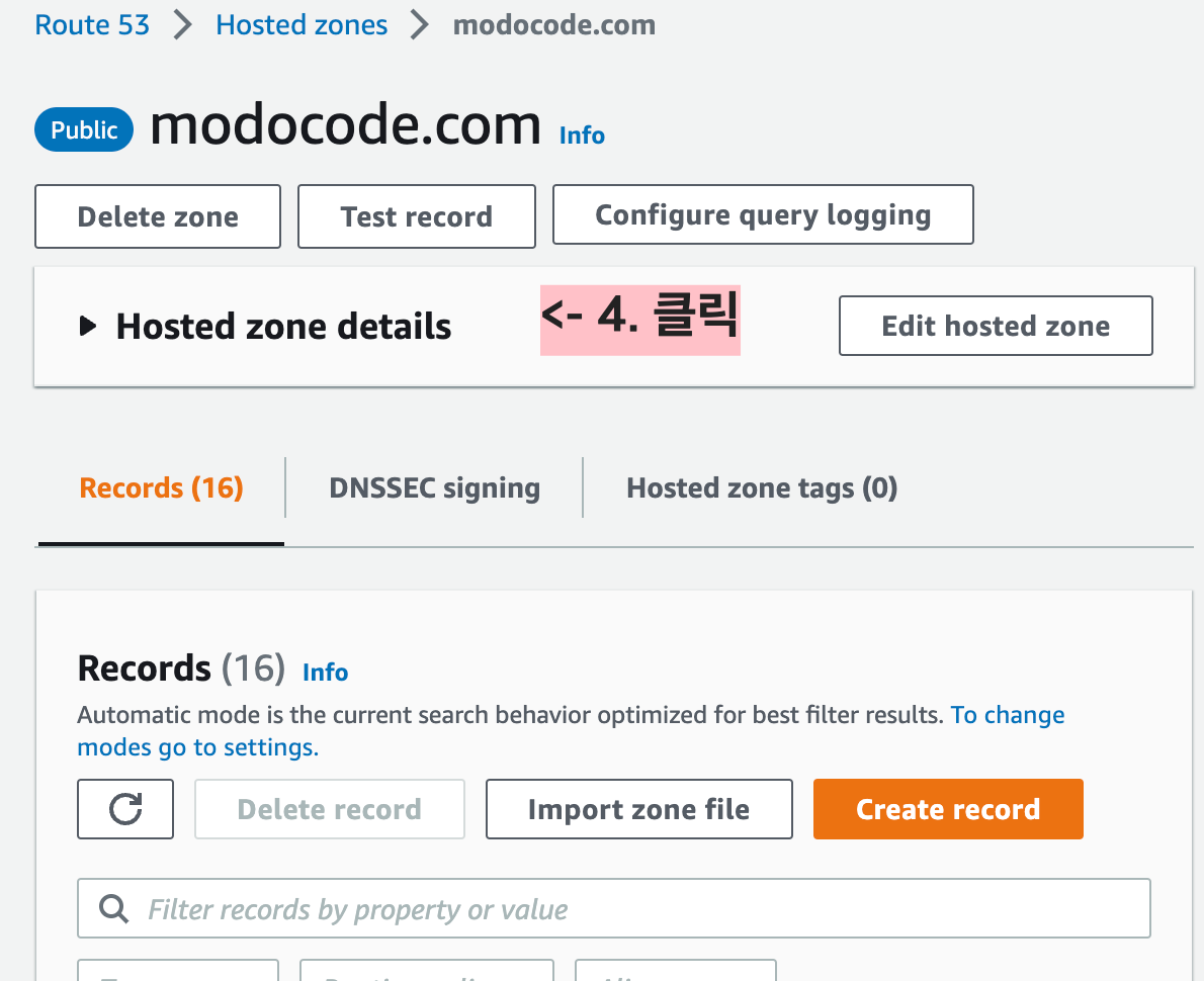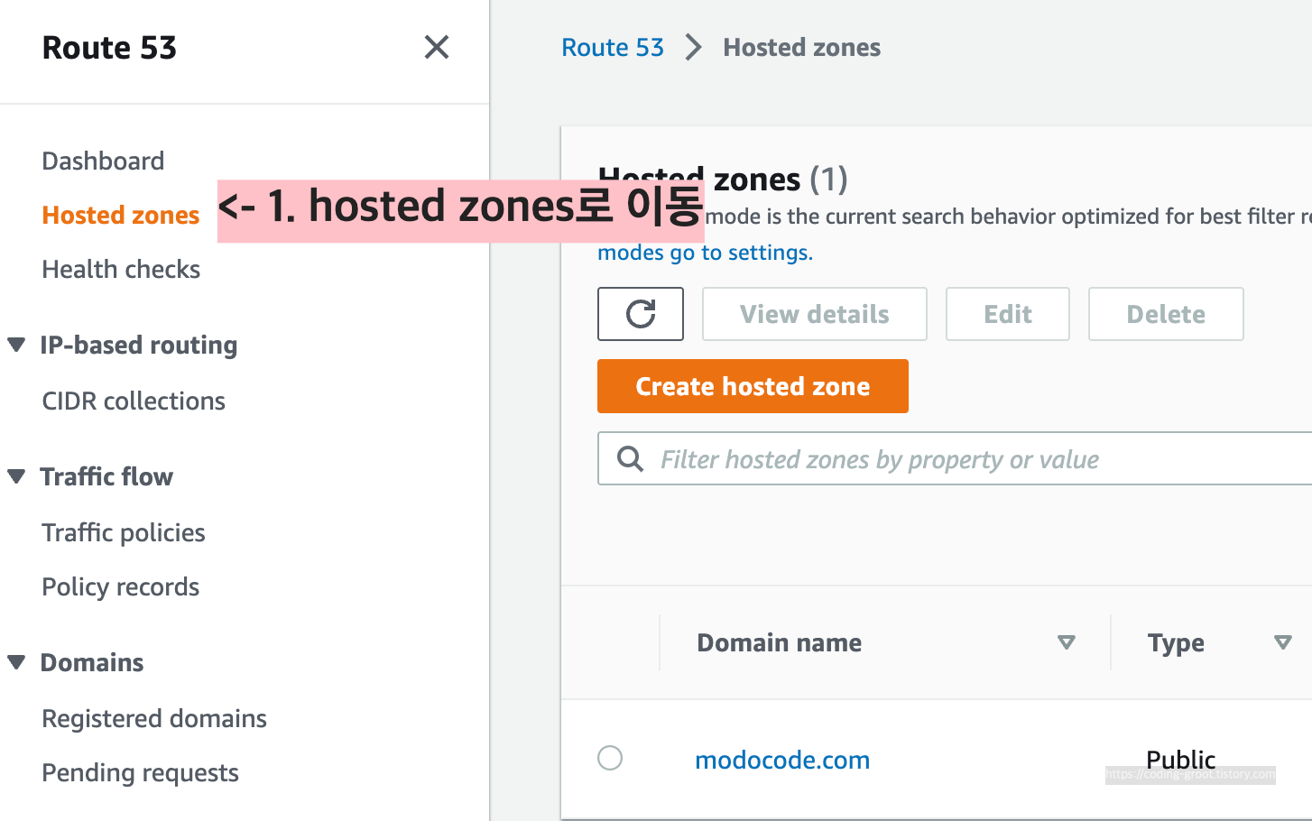 위의 도메인을 옮기는 명령만으로는 hosted zone이 옮겨지진 않습니다.