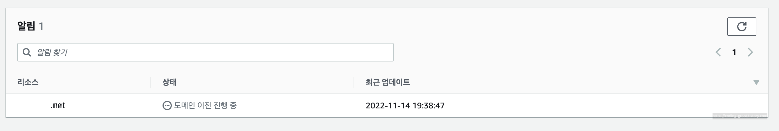 B계정으로 AWS 웹 콘솔에 로그인해서 Route53 페이지로 이동해보면 위와 같이 도메인이 이전 진행 중이라고 뜰 겁니다.