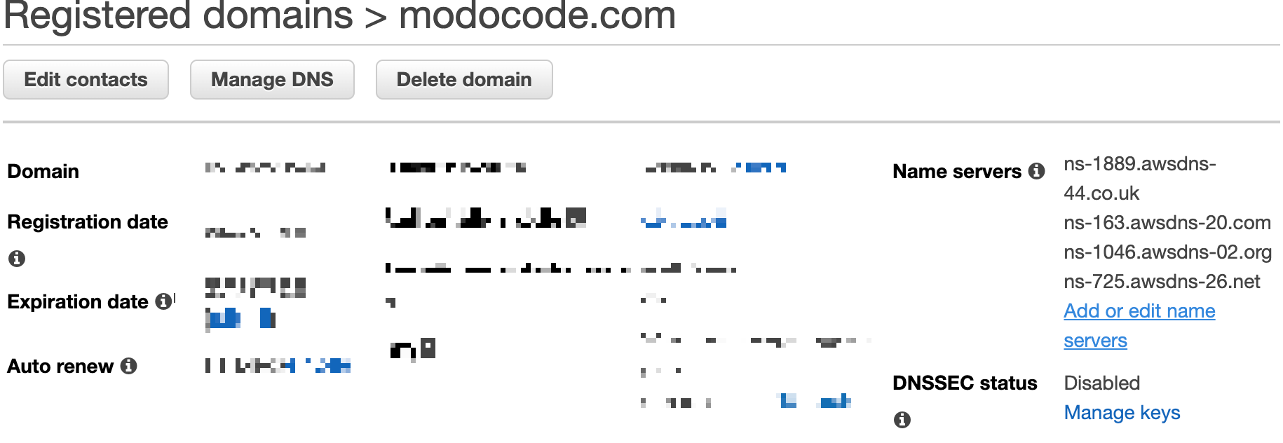 도메인을 다른 계정으로부터 옮기면 registered domain과 route53에서 새로 생성한 hosted zone의 name server 주소가 다를 수 있습니다.