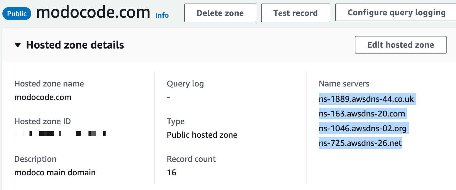 도메인을 다른 계정으로부터 옮기면 registered domain과 route53에서 새로 생성한 hosted zone의 name server 주소가 다를 수 있습니다.