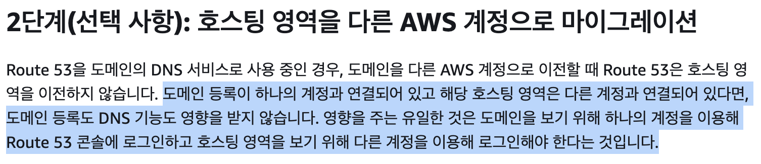 소마 연수 기간이 끝나갑니다. 발표가 끝나면 해당 기관에서 발급해준 AWS 계정을 사용할 수가 없어서 다른 AWS 계정으로 이전해야 했습니다. 지원받은 AWS 계정의 Route53에서 산 도메인을 다른 AWS 계정으로 이전하며 겪은 것을 공유해보고자 합니다.