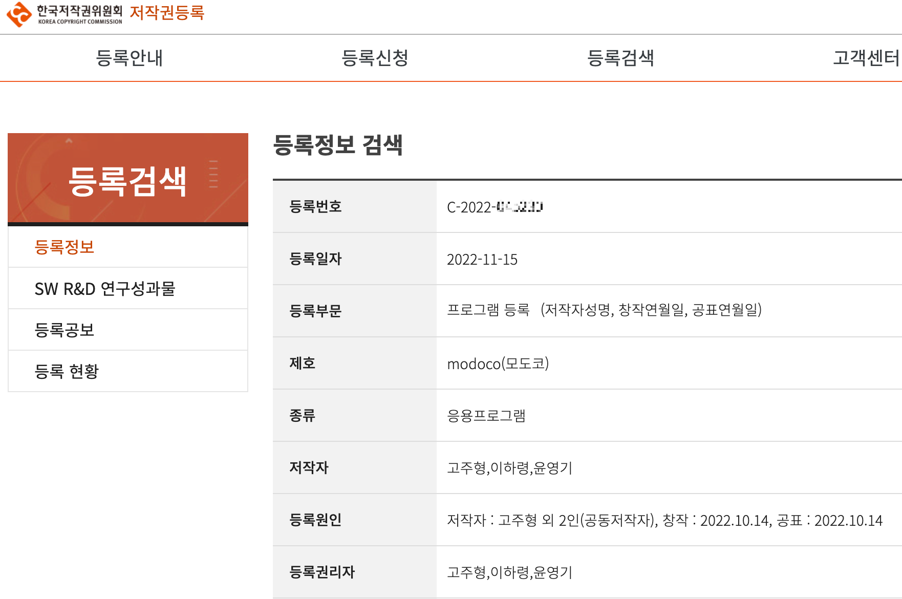 프로젝트를 끝내고 프로그램 저작권 등록도 해보았다. ㅎㅎ