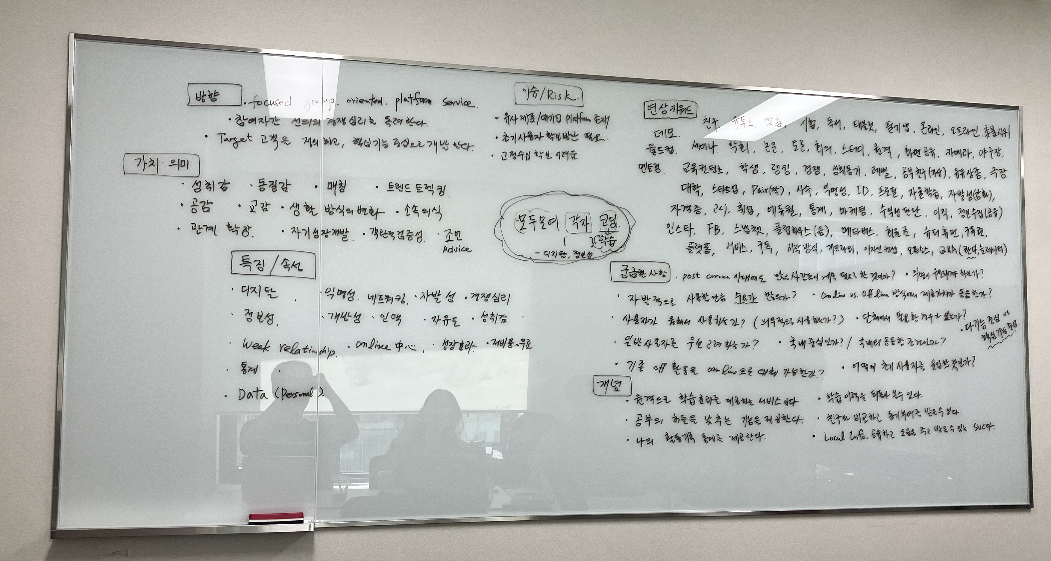 서로 생각하는 용어가 달랐기에 똑같은 주제인데 전혀 다른 말을 할 때가 종종 있었다. 그럴 때 Miro를 사용한 회의가 큰 도움이 됐었다.