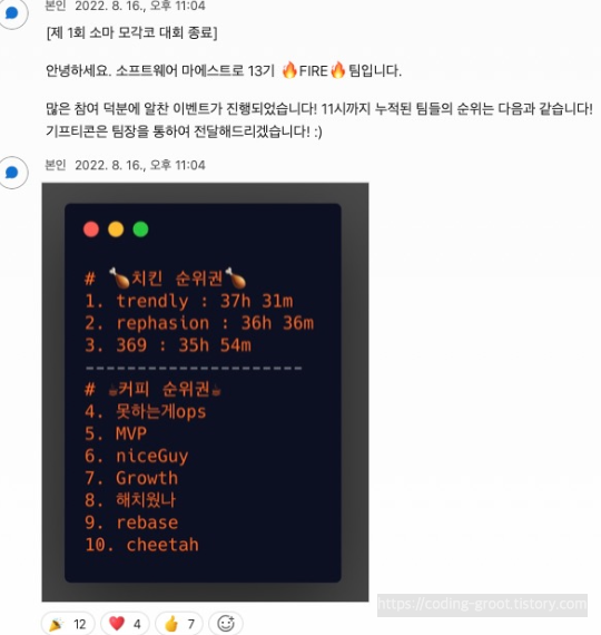 나도 그렇고 팀원 모두 소마가 1년이었으면 더 좋았을 것 같다고 했다.