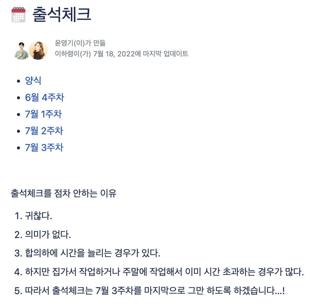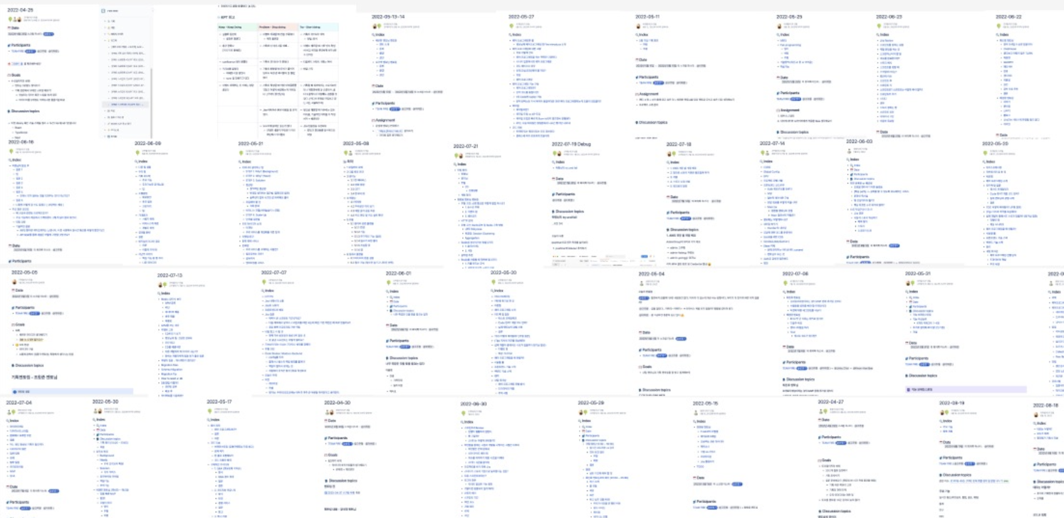회의록을 작성하면서 기록이 엄청 많이 쌓이다 보니 뭐가 어떤 것인지 날짜 제목만으로는 구분이 안 되어서 어떤 문서인지 알 수 있도록 태그를 다는 등 문서화 방식을 개선해 나갔다.