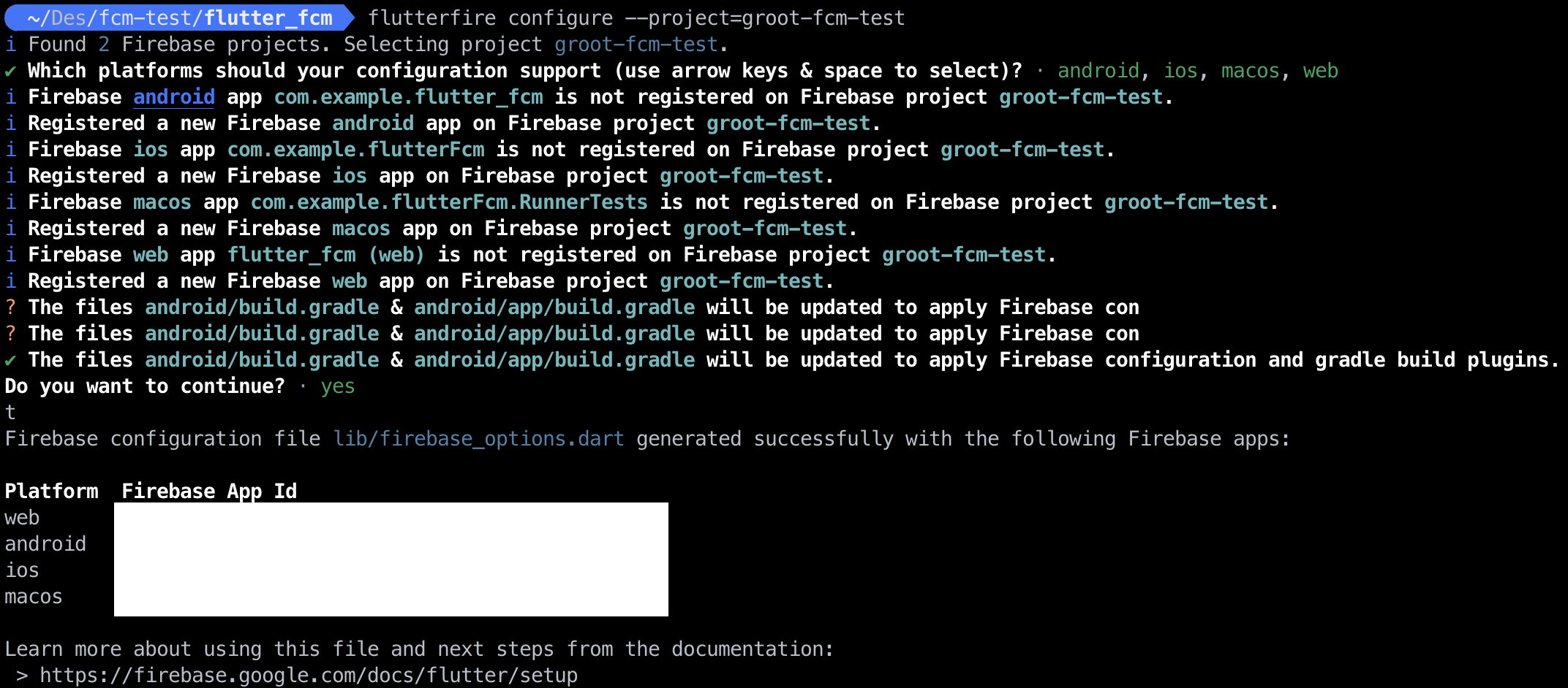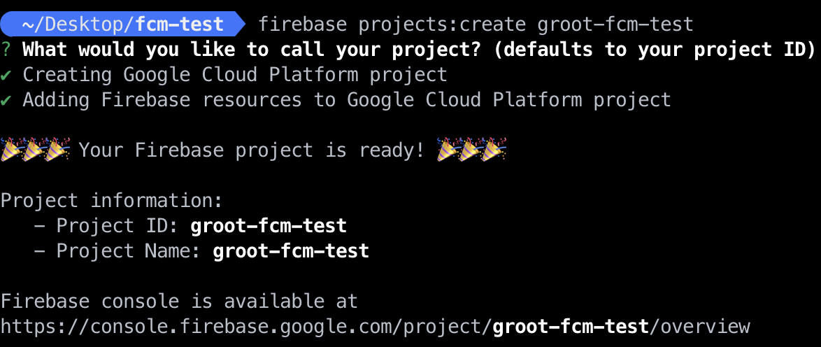 나는 groot-fcm-test라는 이름으로 프로젝트를 만들었다. 전세계에서 유일한 명칭이어야 해서 특이하게 설정해야 한다.