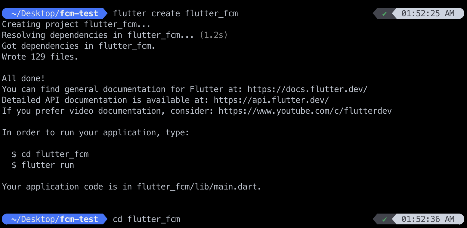 원하는 이름으로 생성해주자. 나는 최종적으로 fcm으로 푸쉬 알림을 테스트해볼 것이기 때문에 flutter_fcm라는 이름으로 프로젝트를 생성했다.