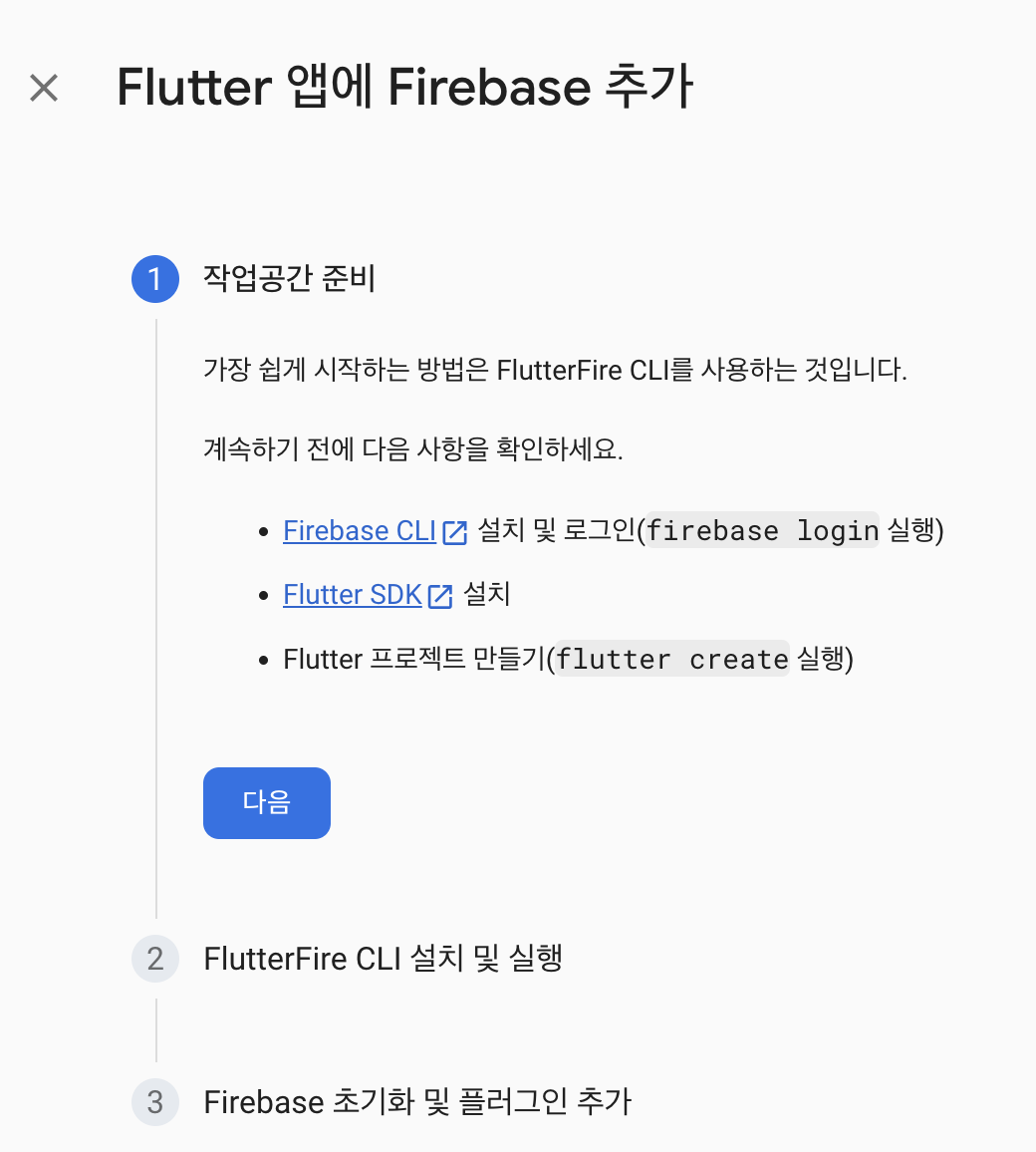5. Firebase Console에서 프로젝트에 접속해서 Flutter 관련 설정을 한다