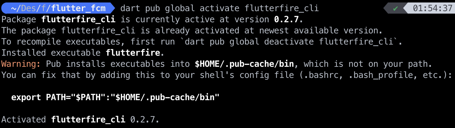 다음의 안내처럼 Flutter Fire CLI를 설치한다.