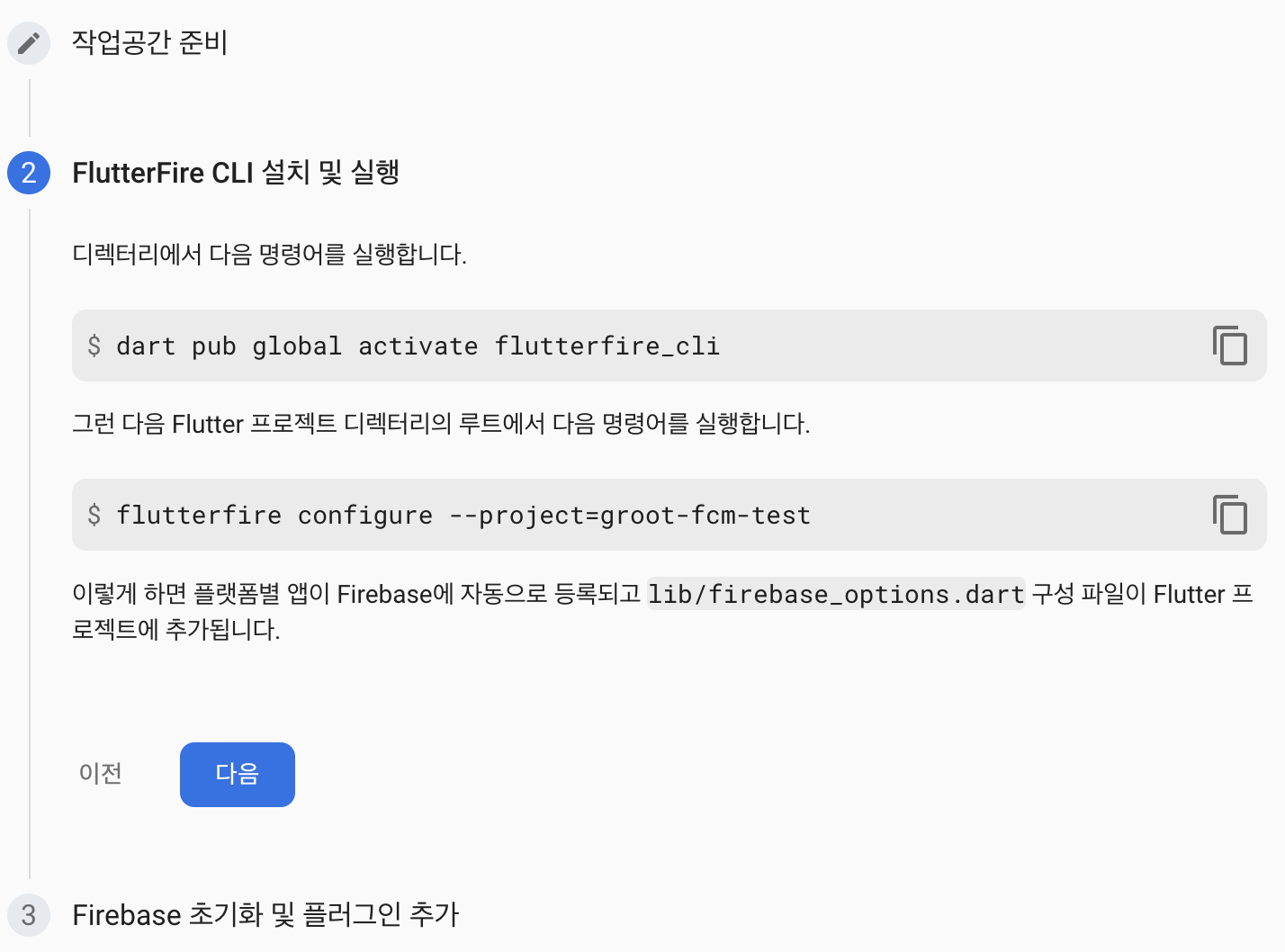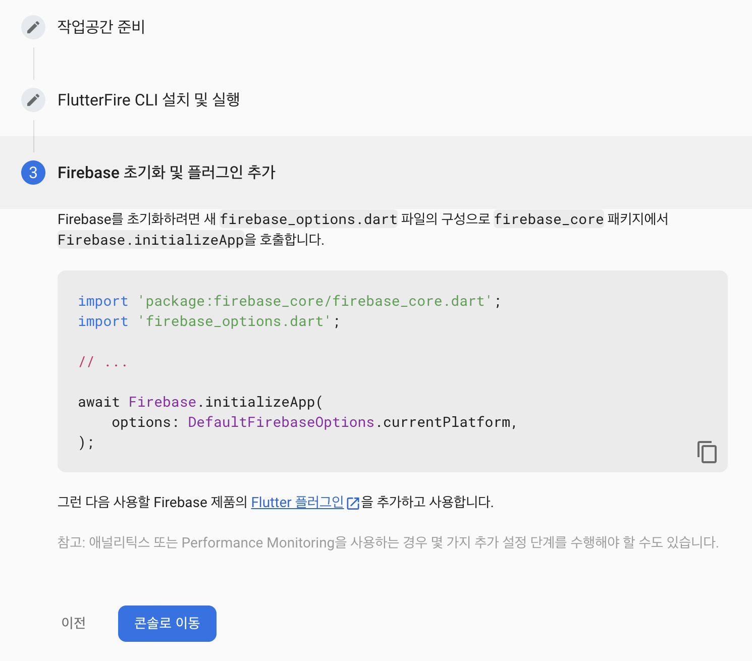 5. Firebase Console에서 프로젝트에 접속해서 Flutter 관련 설정을 한다